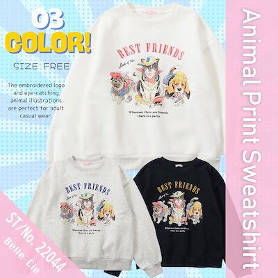 ベルシースウェット トップス 裏起毛 トレーナー イラスト 動物 アニマル レディース 韓国ファッション カジュアル 可愛い プリント ゆったり 冬 着回し