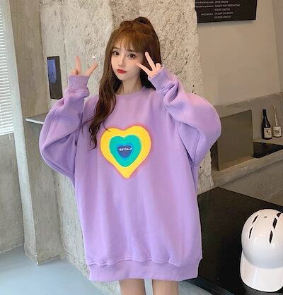 レディース トップス トレーナー 長袖 袖あり ラウンドネック 襟なし もこもこ ベルベット 裏起毛 かわいい 大人可愛い シンプル カジュアル レトロ ラフ ラブリー キュート ナチュラル プリント