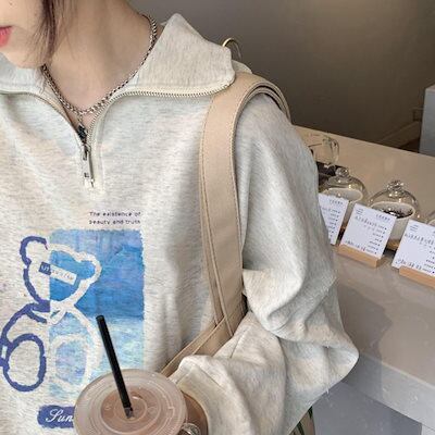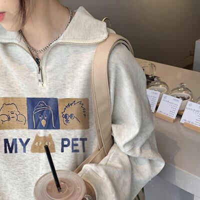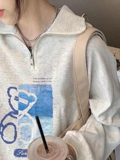 24 2TYPE 裹起毛トップス長袖 かわいいK-PPTロングレディース韓国風衣装カラールーズゆったりカジュアルハーフおしゃれサイズスリーブシルエットファッション系サイドシャツフット