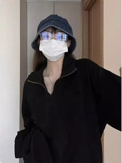 2024 秋冬 2ype 裹起毛トップス長袖 かわいいK-POPTロング_白レディース韓国風ロゴ衣装カラールーズゆったりカジュアルハーフおしゃれサイズスリーブシルエットファッション系シャツ春