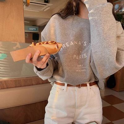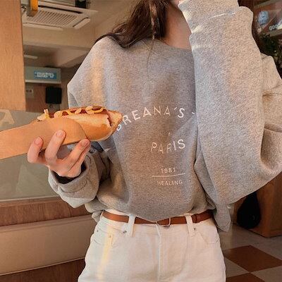 ロゴ トレーナー レディース 韓国 ファッション シンプル ロゴプリント 裏起毛 スウェット トップス