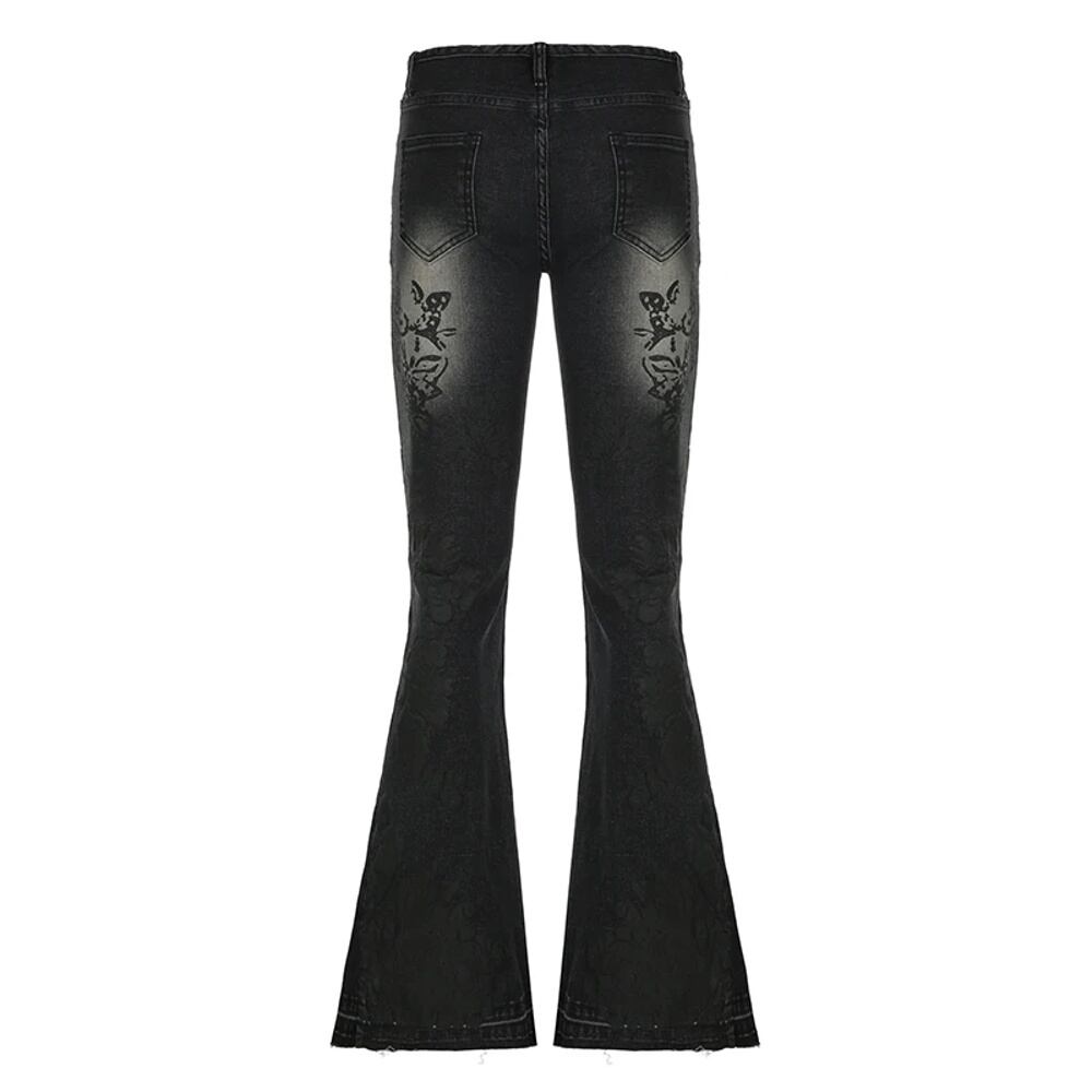 Cibbar-レディースフローラルプリントローライズスリムデニムパンツ,ママジーンズ,レトロストリートウェア,ママジーンズ,ディストレストパンツ,y2k,2000s y2k ボトムス T240831173434_01