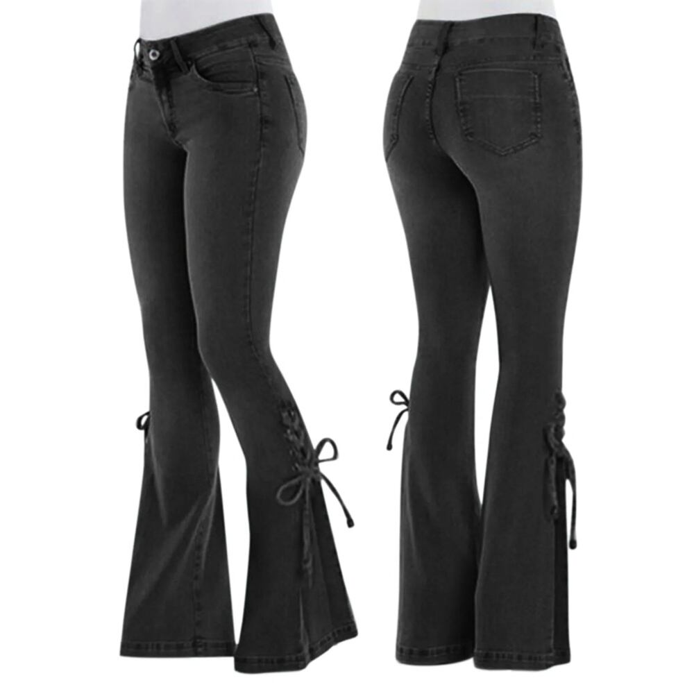 レディースハイウエストフレアジーンズ、ボウブーツカット、レースアップパンツ、ヴィンテージブルーベルボトムデニムパンツ、カジュアルカウガールファッション、y2k y2k ボトムス T240831173445_01