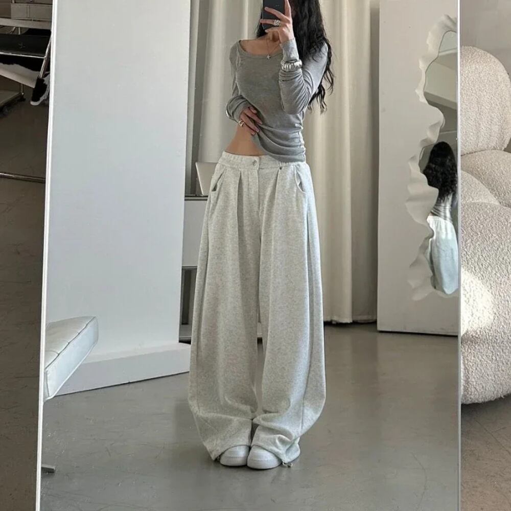 Qweek-女性用特大グレースウェットパンツ、レトロバギーパンツ、カジュアルスポーツストリートウェア、ヒップホップパンツ、ジョギング、アメリカンスタイル、y2k y2k ボトムス T240831222734_02