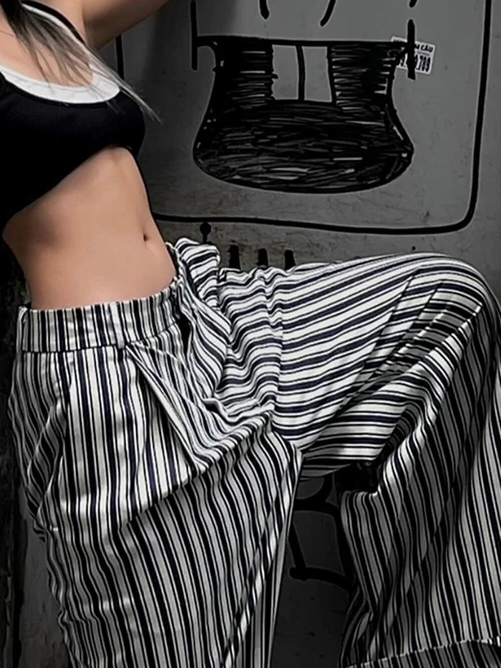 Iamsure-女性のカジュアルなストライプのワイドレッグパンツ、ルーズなベーシックなミッドウエストカーゴパンツ、レディースストリートウェア、春と秋のファッション、2024 y2k ボトムス T240831222814_01