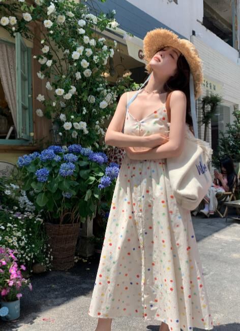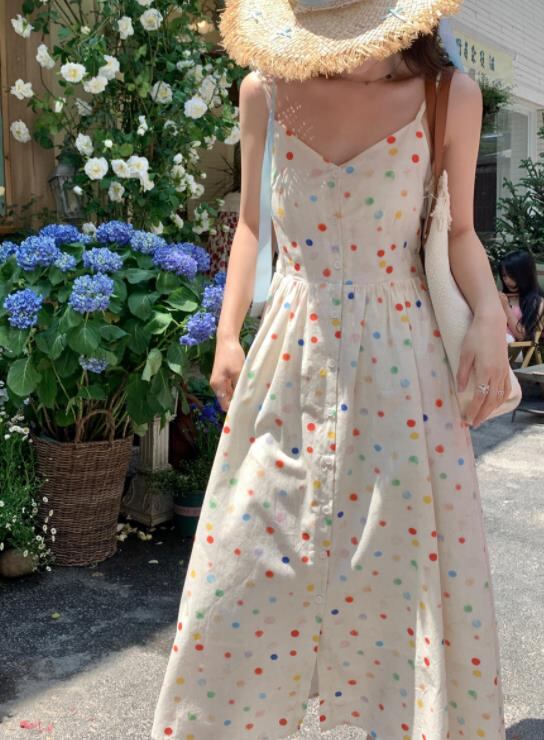 2024春夏新作 女 レディース ハイウエスト 袖なし 吊りスカート ロング ワンピース 台型スカート