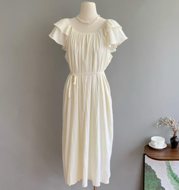 2024春夏新作 女 レディース ハイウエスト 半袖 無地 ロング ワンピース 台型スカート