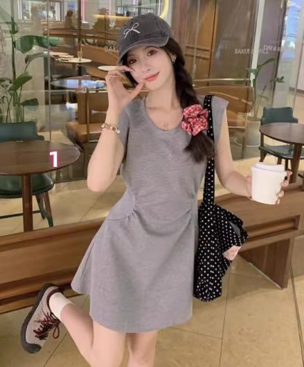 春夏新作 女 レディース ハイウエスト 半袖 ミニ ワンピース ドレス 台型スカート