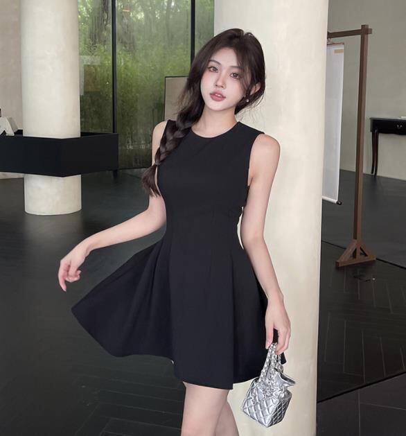 春夏新作 女 レディース ハイウエスト 袖なし ミニ ワンピース ドレス 台型スカート
