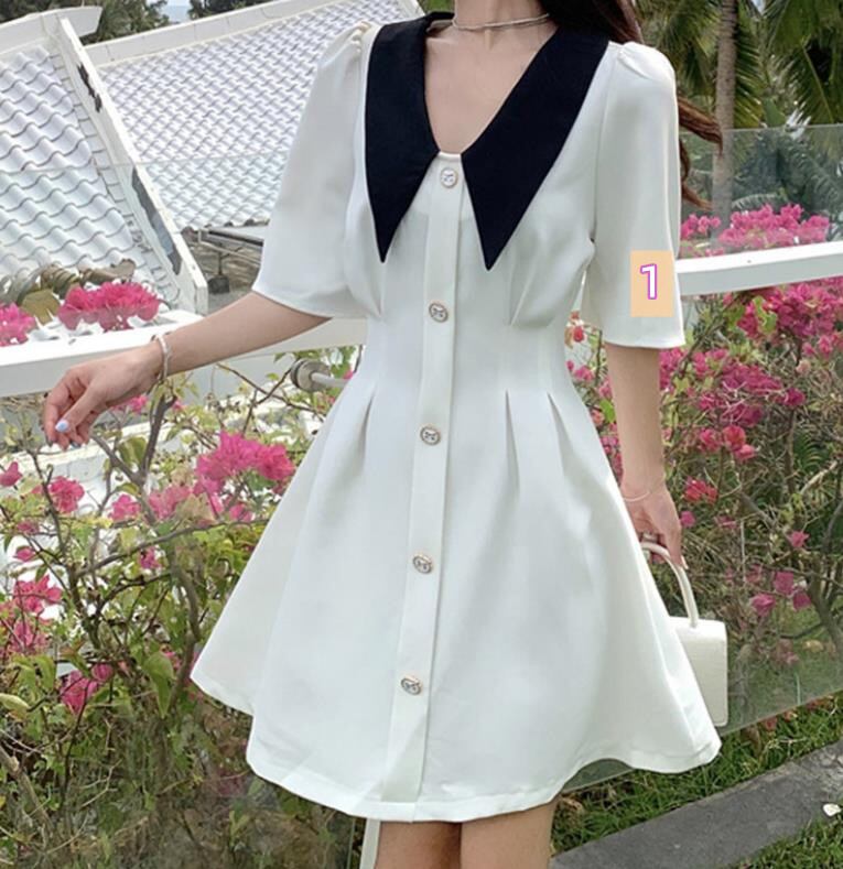 2022夏新作 女 レディース ハイウエスト 半袖 ミニ ワンピース ドレス 台型スカート 2色 S-L