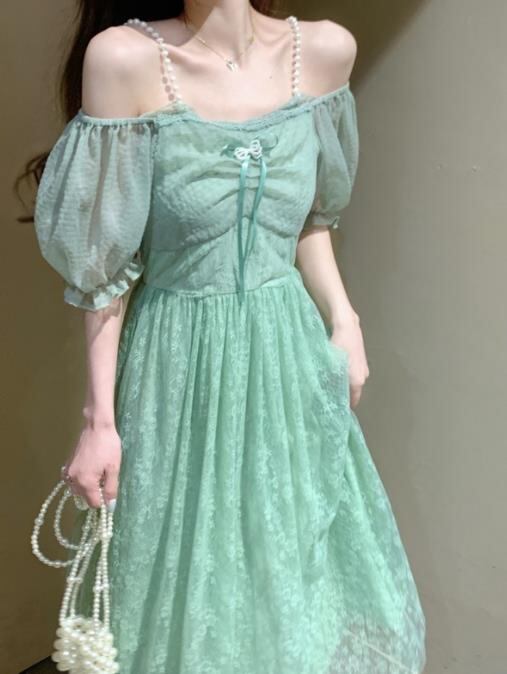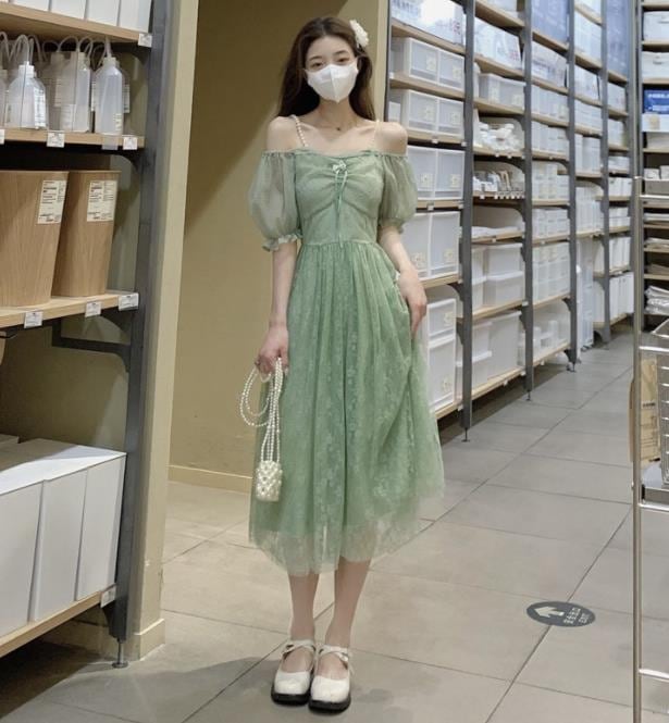 2022春夏新作 女 レディース ハイウエスト 半袖 パール ロング ワンピース 台型スカート S-L
