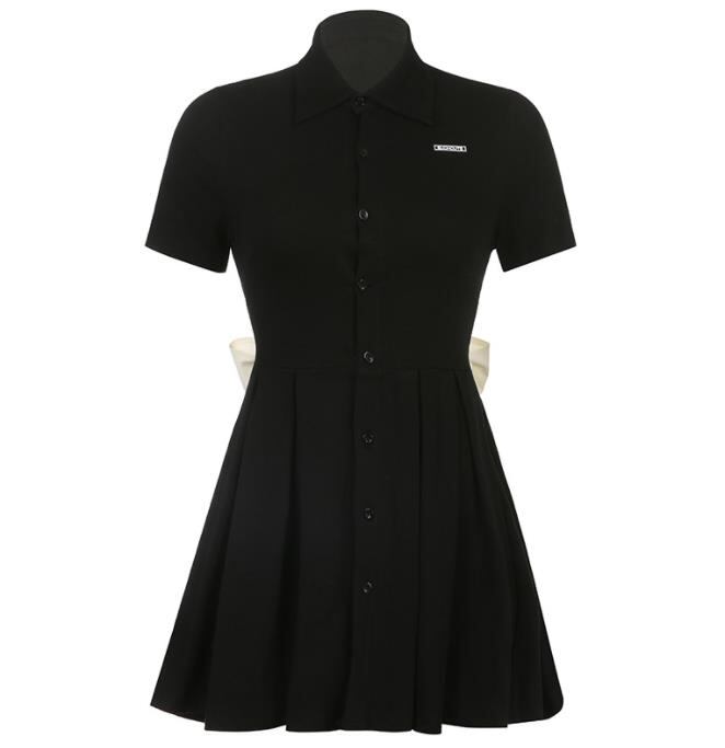 2022春夏新作 女 レディース ハイウエスト 半袖 ニット ミニ ワンピース ドレス 台型スカート S-L