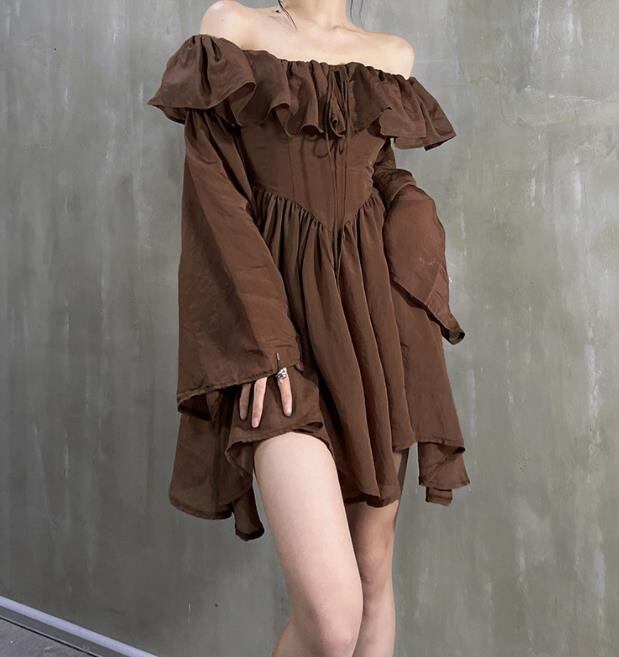 2022春夏新作 女 レディース ハイウエスト長袖 ミニ ワンピース ドレス 台型スカート S-L