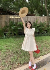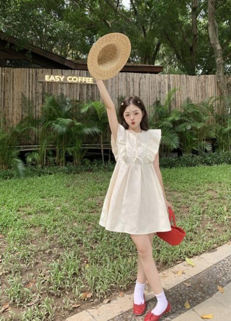 2022春夏新作 女 レディース ハイウエスト 袖なし 無地 ミニ ワンピース ドレス 台型スカート M/L