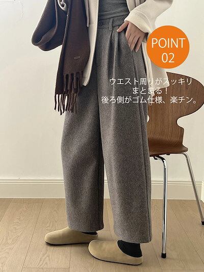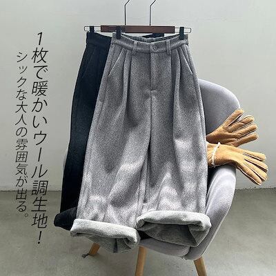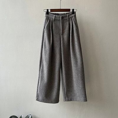 ガウチョパンツ 秋冬 レディース 9分丈 パンツ ワイドパンツ ウール調 ストレートパンツ ロングパンツ 長ズボン 冬 ゆったり 大きいサイズ 体型カバー ウエストゴム 暖かい ハイウエスト 美脚 細