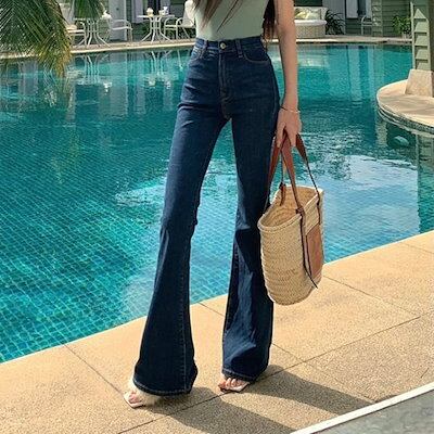 2024春夏パンツ デニム ジーンズ スキニー ワイドレッグ ハイウエスト 脚長効果 美脚効果 細見え 春 水色 カジュアル 韓国ファッション レディース お出かけ