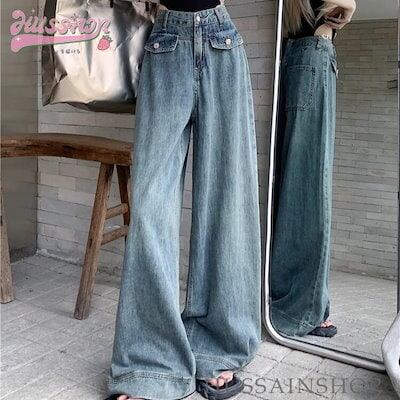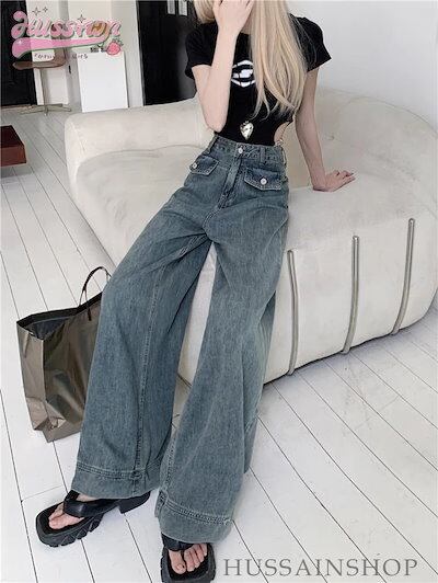 2024 春夏 ボトムスジーンズ デニム ハイウエスト 脚長効果 レッグ ファッション 足長効果 デニム ルーズ カジュアル スタイルアップ 脚長 美脚 クール かっこいい