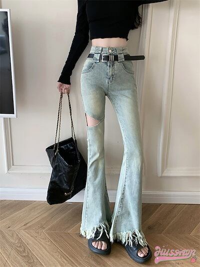 パンツ デニム ジーンズ スキニー ワイドレッグ スリム フリンジ ハイウエスト 脚長効果 美脚効果 細見え 春 カジュアル 韓国ファッション レディース お出かけ