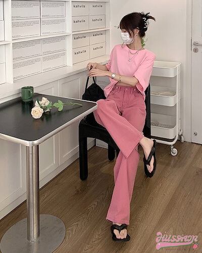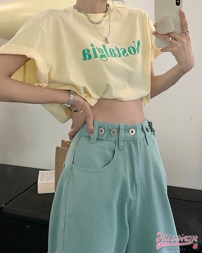 パンツ デニム ジーンズ ワイド ストレート ハイウエスト 脚長効果 美脚効果 細見え 春 ビビットカラー カジュアル 韓国ファッション レディース お出かけ