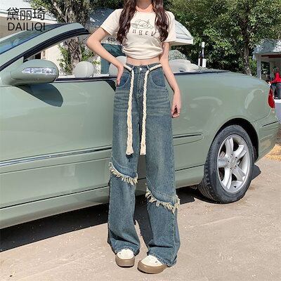 デニムパンツ レディース オリジナル ストレートジーンズ ハイウエスト 薄手 ゆったりパンツ カジュアルパンツ ハイウエスト