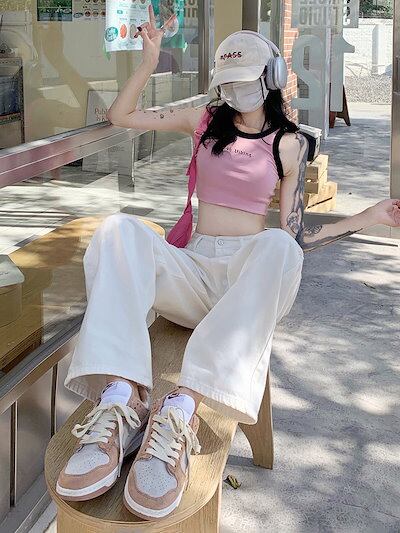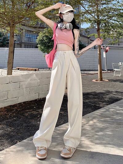 デニムボトムス ジーンズ ワイドパンツ レディース ホワイト レトロ 着痩せ ジーンズ ロングパンツ レディース服 デザイン感 ハイウェストゆったり 長ズボン ロングズボン ワイドパンツ モップパンツ