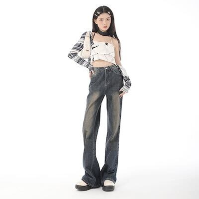 デニムボトムス ジーンズ ワイドパンツ レディース 着痩せ ジーンズ ロングパンツ レディース服 デザイン感 ハイウェストゆったり 長ズボン ロングズボン ワイドパンツモップパンツ