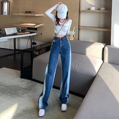 2024新作 おしゃれ ゆったり デニムパンツ 百掛け 着痩せ モップパンツ ワイドパンツ脚長効果!スキニーパンツ ワイドパンツ スラックスパンツ デニムパンツ