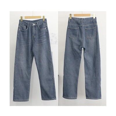 脚長効果!デニムパンツ 裏起毛ストレートデニム裏ボア ファッション