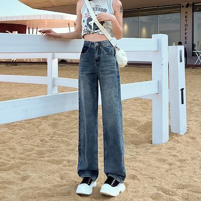 デニムボトムス ワイドパンツ デニムパンツモップパンツ レディース 夏 デザイン感 ハイウェスト 着痩せ ストレートパンツ