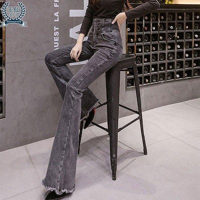 デニムパンツ ベルボトム レディース ジーンズ ブーツカット フレアパンツ ブラックデニム ハイウエスト ジーパン 美脚 スリム ストレッチ 着痩せ