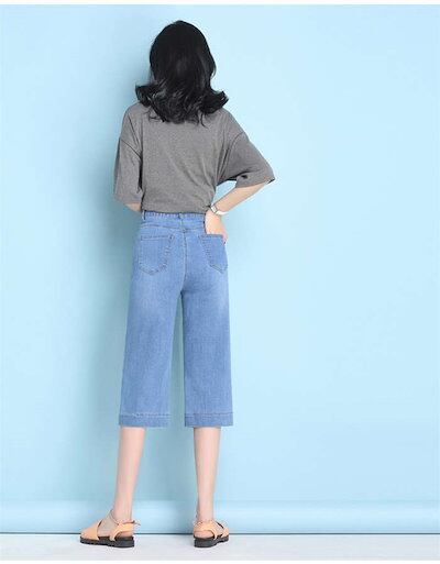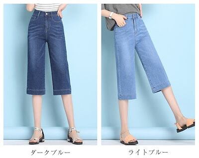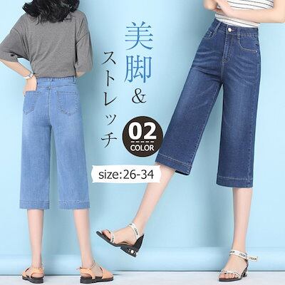デニムパンツ レディース 春 夏 無地 ポケット付き ワイドパンツ ボトムス ストレッチ 美脚 スリム ジーンズ ジーパン ハイウエスト 涼しい 薄手 クロップドパンツ 春夏 7分丈 大きいサイズ カ