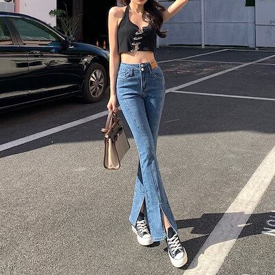 脚長効果!スキニーデニムパンツ レディースデニムパンツ レディースジーンズ スキニー ワイドパンツ ストレッチ スリム デニム 細身 美脚効果 02