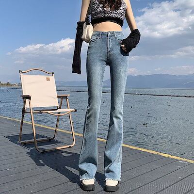 人気SALE ストリート ストレッチ ハイウエスト スリム ジーンズ レディース 22 春レトロ ワイルドホーン 長いバリ付き