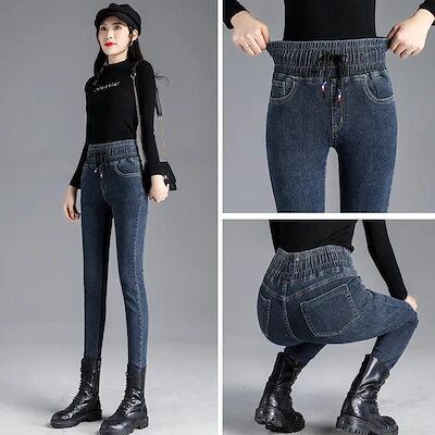 脚長効果スキニーデニムパンツハイウエストおなかコントロールジーンズ23新作スリムストレッチタイトパンツレディース 韓国ファッション
