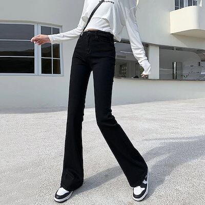 デニムパンツ フレアズボン スリム見え モップパンツ ゆったり レディース 25福袋