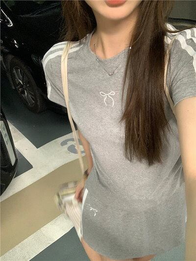 2024 夏 韓国 甘い トップス Tシャツ ラウンドネック韓国 2色展開丈 休日 ファッション スリムフィット レディース 休日 おしゃれ T