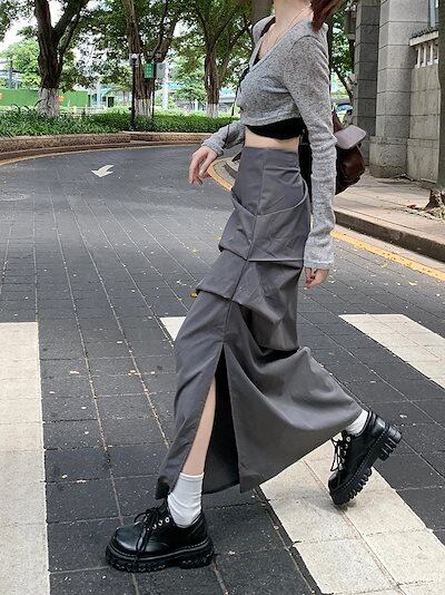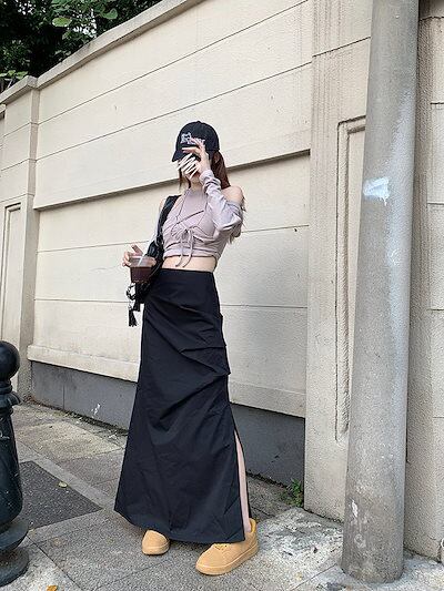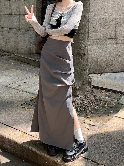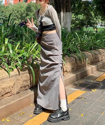 2024 春秋 スカート ロング丈 ポケット ハイウエスト マキシロング スカート ロング スカート 美脚効果 脚長効果 細見え 夏 おしゃれ かわいい サイド韓国系ファッション レディース お出かけ
