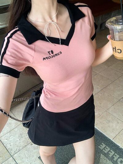 2024 春夏トップス 大人可愛い半袖 Tシャツ 韓国 ラウンドネックロゴスリム かわいいへそ出し ショート おしゃれスリーブ カジュアルサイドコーデ丈 ファッション系レディースストリートお出かけ T