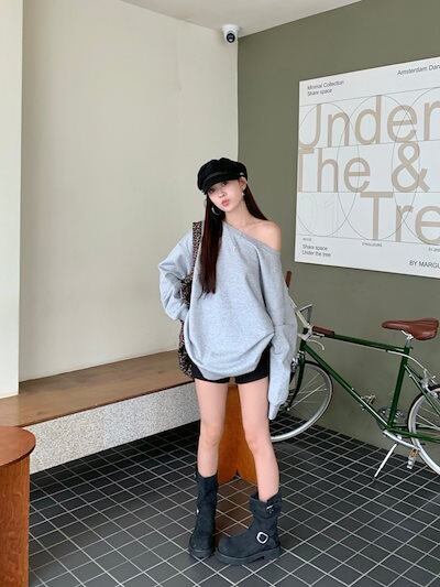 2024秋冬トップス 長袖 肌見せ 無地 ゆったり 細見え 秋冬 黒 おしゃれ かわいい 韓国系ファッション レディース お出かけ