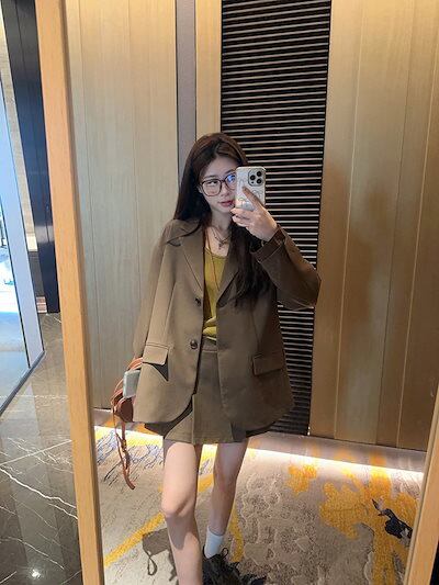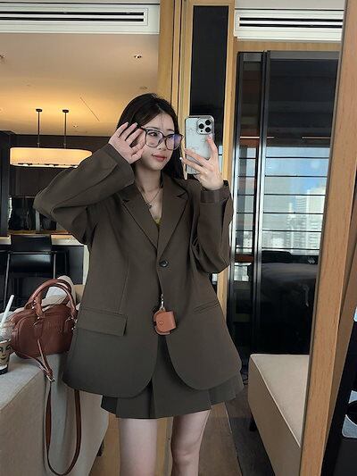 2024秋冬2点セット アウター ジャケット テーラードカラー 長袖 スカート ミニ丈 秋 茶色 おしゃれ かわいい 韓国ファッション レディース お出かけ