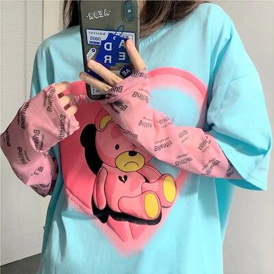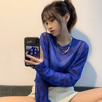透けアイテム を楽しむ 透明感UP tシャツ ファッション 韓国 トップス デザイン カットソー イラストエンジェル 長袖 ロングプリント カジュアル 夏春 秋