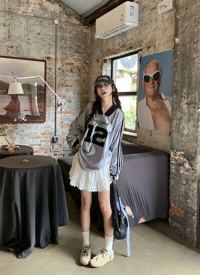 2024 秋冬 トップス 長袖 かわいいラウンドネック Tシャツ レディース 韓国風 12ロゴ衣装ルーズ ゆったりカジュアルおしゃれサイズスリーブシルエットファッション系サイドシャツフットスウエット春