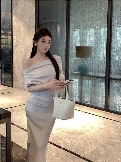 2024 春夏 ロングワンピース ロング丈 ワンピース 長袖 ファッション フィット カジュアル パーティー きれいめ ハイ ハーフリブフレンチスタイルアップ 色っぽ 女っぽ カジュアル大人