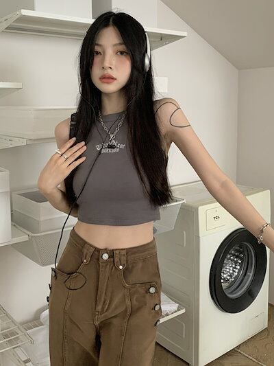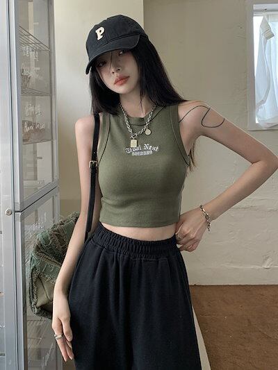 2024 夏 韓国 キャミソール トップス ブラウス トップお洒落 セクシー ショート スポーツ 韓国 tシャツ ファッション系ネック ヨガやダンススポーツにもup!