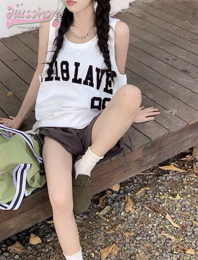 2024春夏「上下別売り」 ベスト Tシャツ ベスト セットアップ ショートパンツ 2点セット 刺繍 ミドル丈 トップス 可愛いT おしゃれ