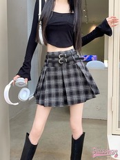 スカート ミニ丈 プリーツ 台形 Aライン チェック ハイウエスト 脚長効果 美脚効果 細見え 秋 かわいい おしゃれ カジュアル 韓国ファッション レディース お出かけ