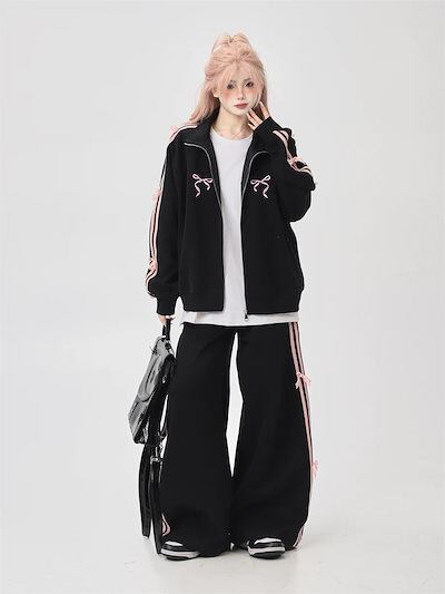 2024 春秋 2点セット トップス お出かけ 羽織り 韓国 レディース フルラウンドヘム ルーズ サイド ボトムス ストレート系冬 ゆったり サイズワイドシルエット上下リラックストラック