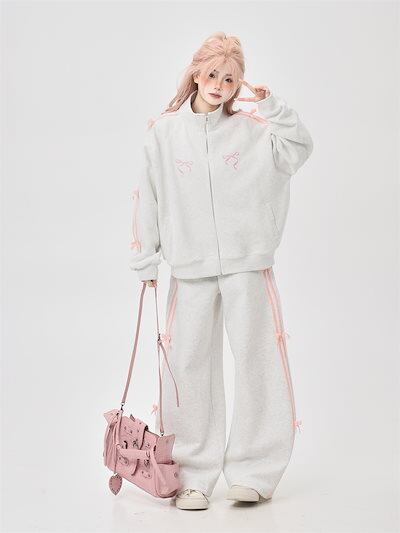 2024 春秋 2点セット トップス お出かけ 羽織り 韓国 レディース フルラウンドヘム ルーズ サイド ボトムス ストレート系冬 ゆったり サイズワイドシルエット上下リラックストラック2