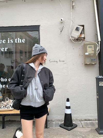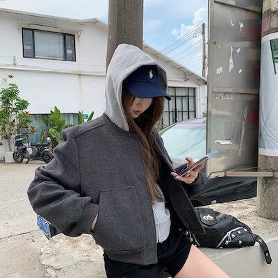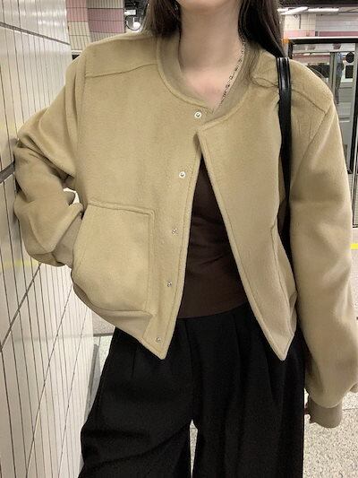 2024 秋 韓国 かわいい ニットネック レディース アウター ブルゾン お出かけ ブラック アウター長袖セクシートップスサイド冬カジュアルファッション系お出かけフル丈