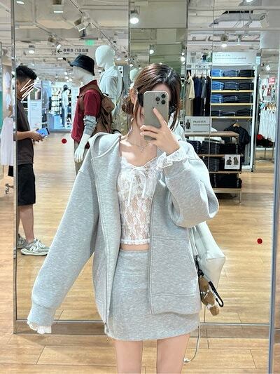 2024 秋冬トップス パーカー フード付き 羽織りミニスカート丈 きれいめ 大人っぽ 上品 サイズゆったりカジュアルトラックストリートシルエットスリーブかわいいファッション系春3点セットアップ
